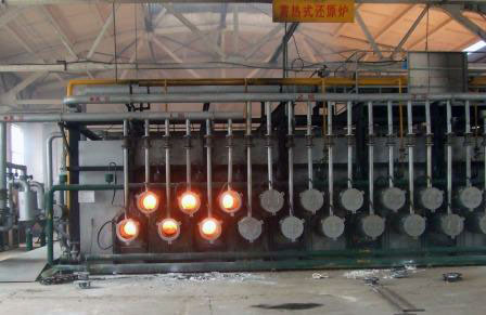 这台炉是双面双排空气蓄热式50罐金属镁还原炉,燃料为天然气。